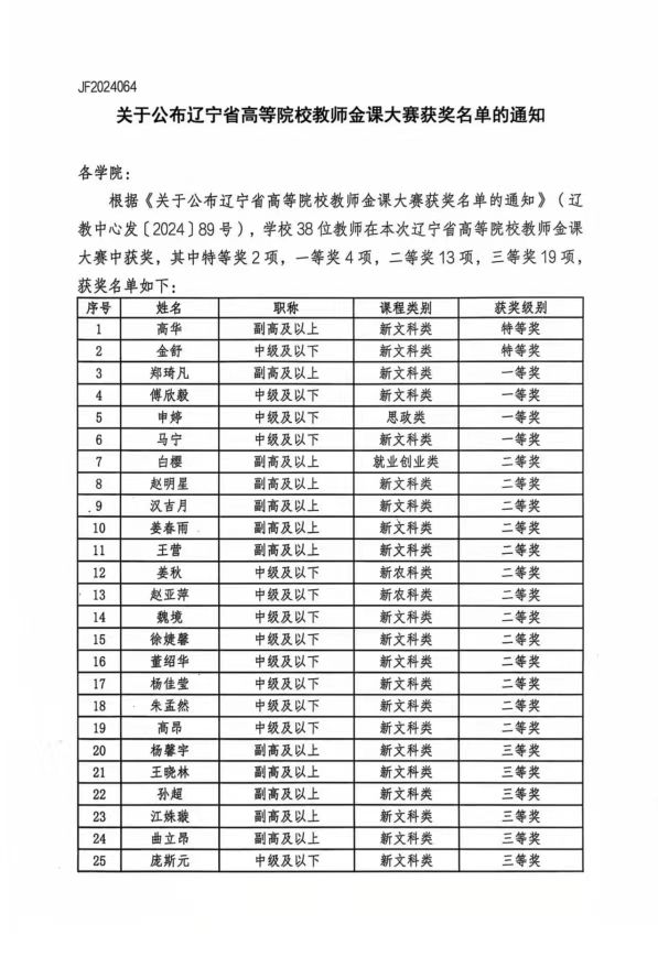 申婷老师获得2024年辽宁省教师金课大赛一等奖